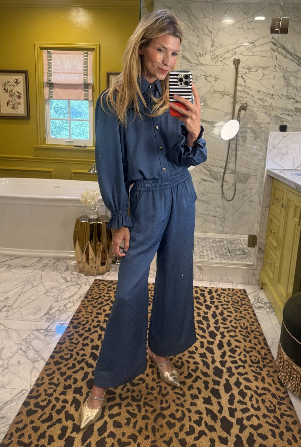 Head to toe blue, but we are not feeling blue about it. THe ultimate in chic and comfort, this easy pairing will be working for you all season long.